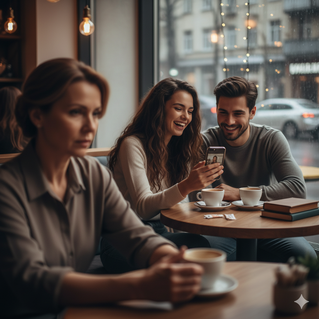 Они даже не заметили, как за соседним столиком сидела Елена Витальевна. Заглянула в кафе она случайно, возвращаясь от подруги. Но, увидев невестку с незнакомым мужчиной, замерла, как будто сама не верила своим глазам. Она тихо вытащила телефон и начала снимать.
