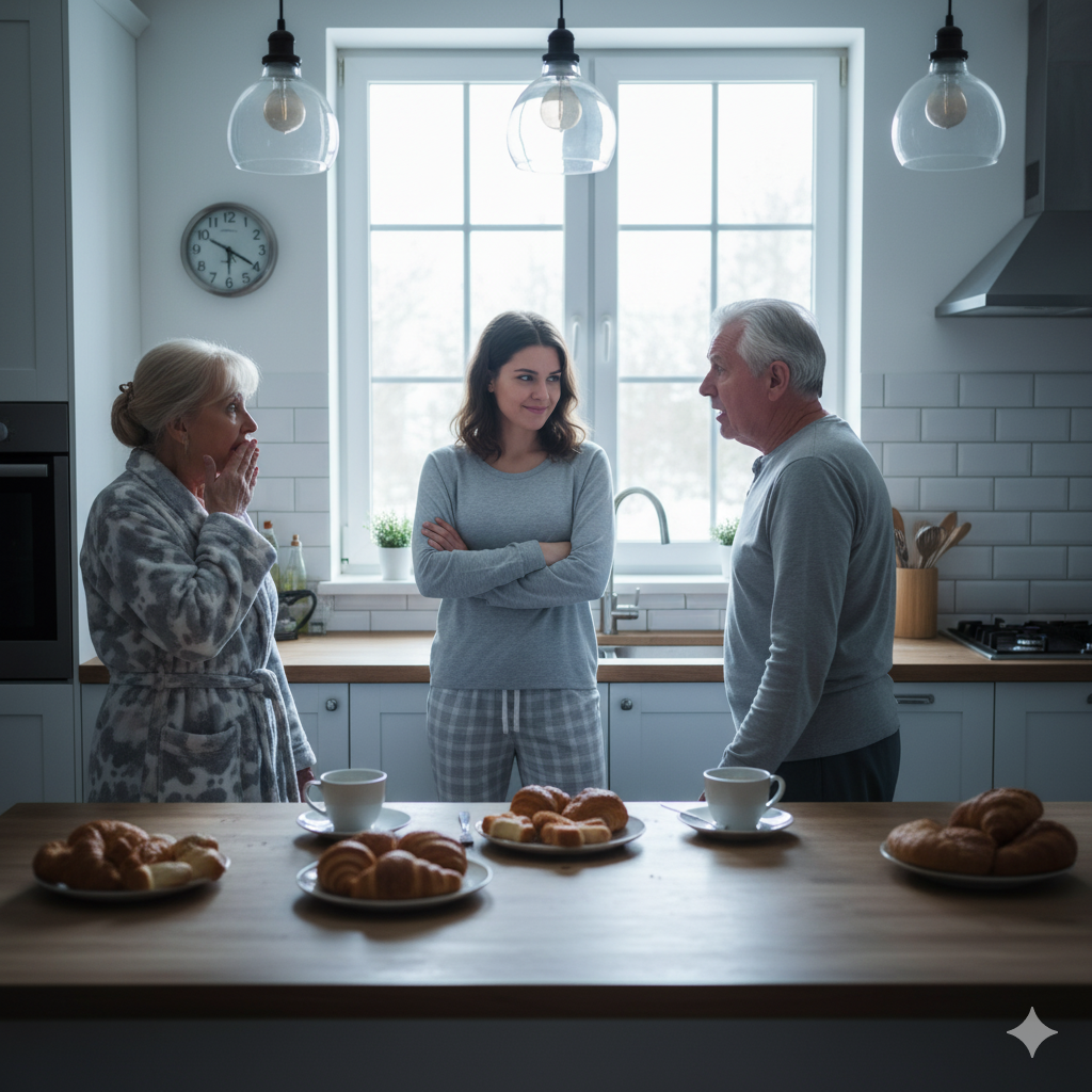 Свёкор стыдливо опустил глаза, а свекровь поперхнулась булочкой: