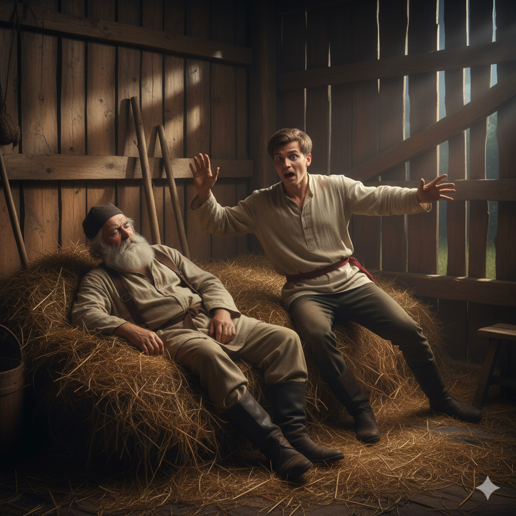 До бабушки дошло, и она рассказала деду, что днем прибегал внучка и интересовалась, спит ли дед на сеновале.
