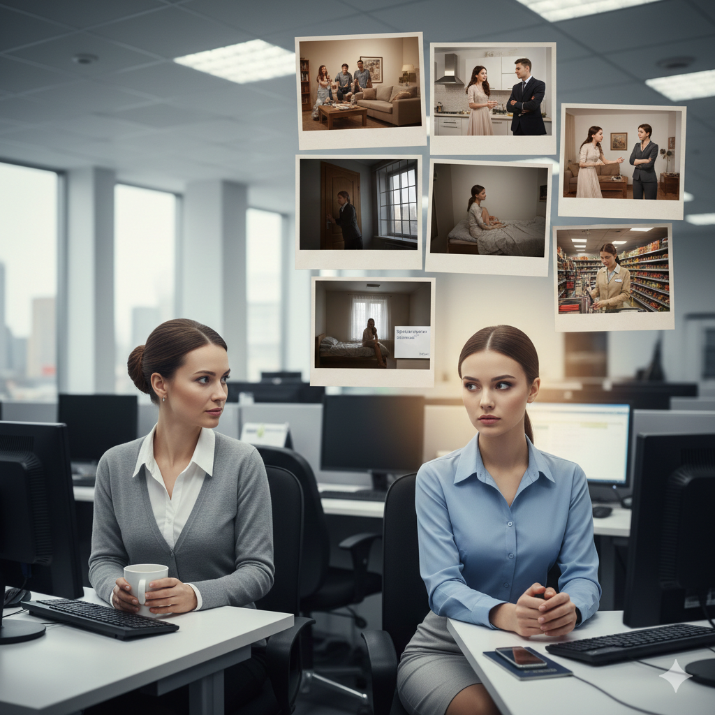 Лариса сидела за небольшим офисным столиком, машинально крутя в руках чашку с кофе. Взгляд её скользил по рядам одинаковых рабочих мест, по серым стенам колл‑центра, пока наконец не остановился на Насте – девушке, сидевшей напротив.