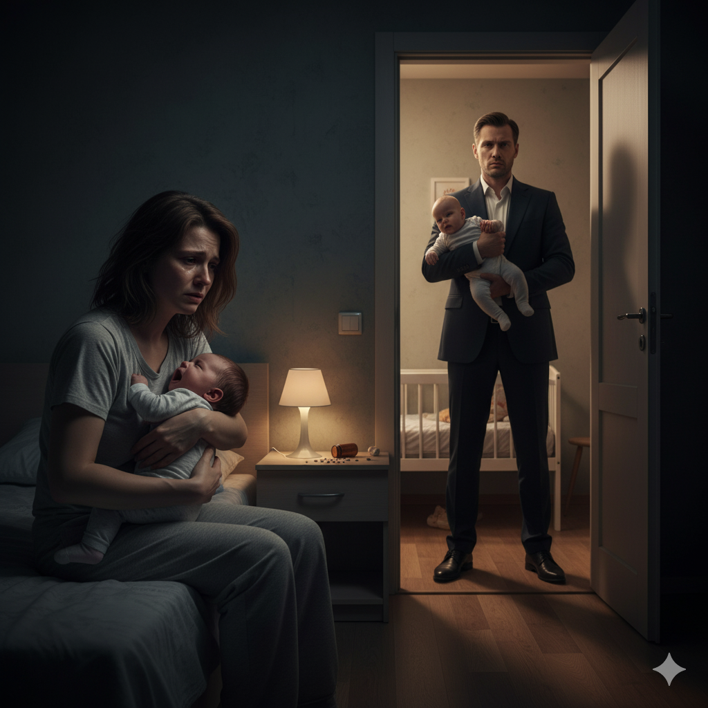 В комнате повисла тяжёлая тишина, нарушаемая лишь плачем малыша и тяжёлым дыханием измученной женщины. Ольга опустилась на кровать, чувствуя, как последние силы покидают её тело.
