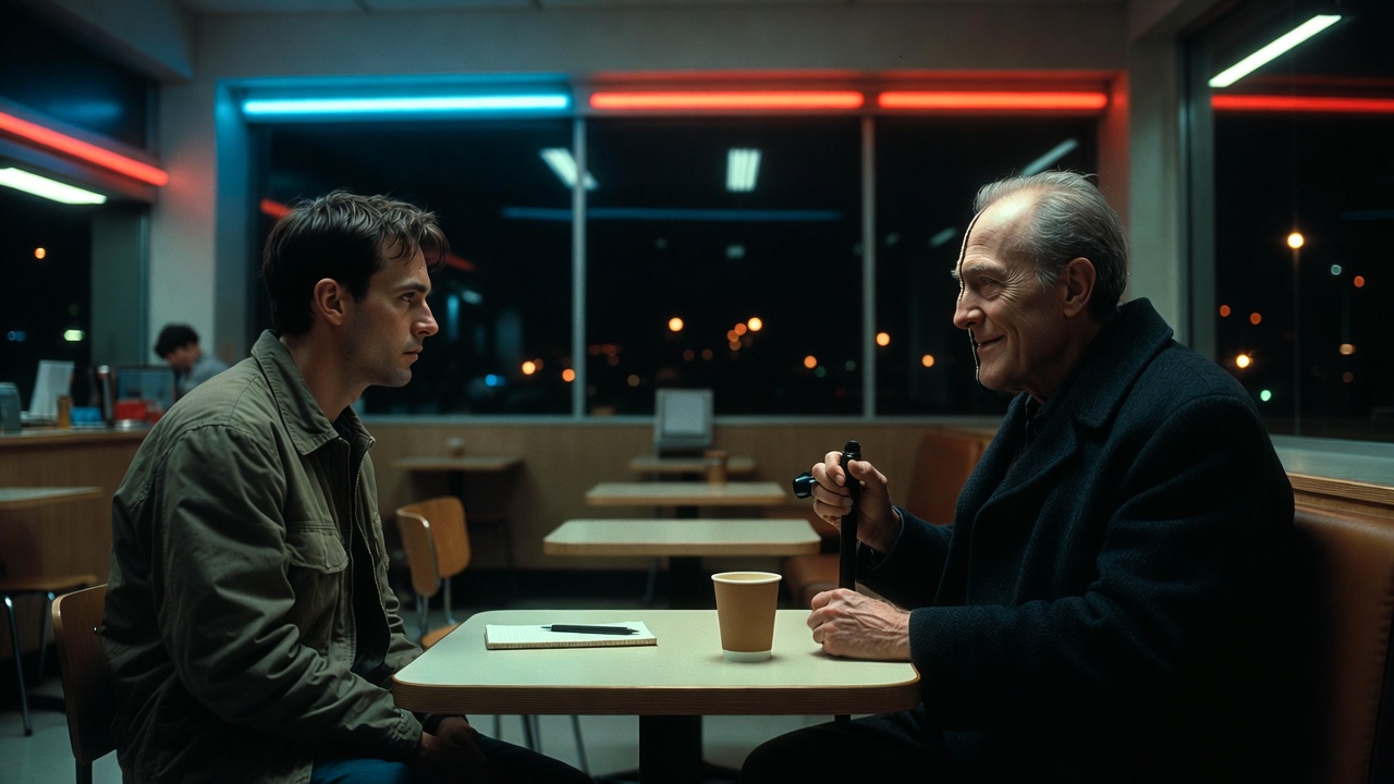 Они сидели в Макдональдсе. Мужчина лет тридцати пяти и высокий старик. Мужчина разглядывал лицо старика.