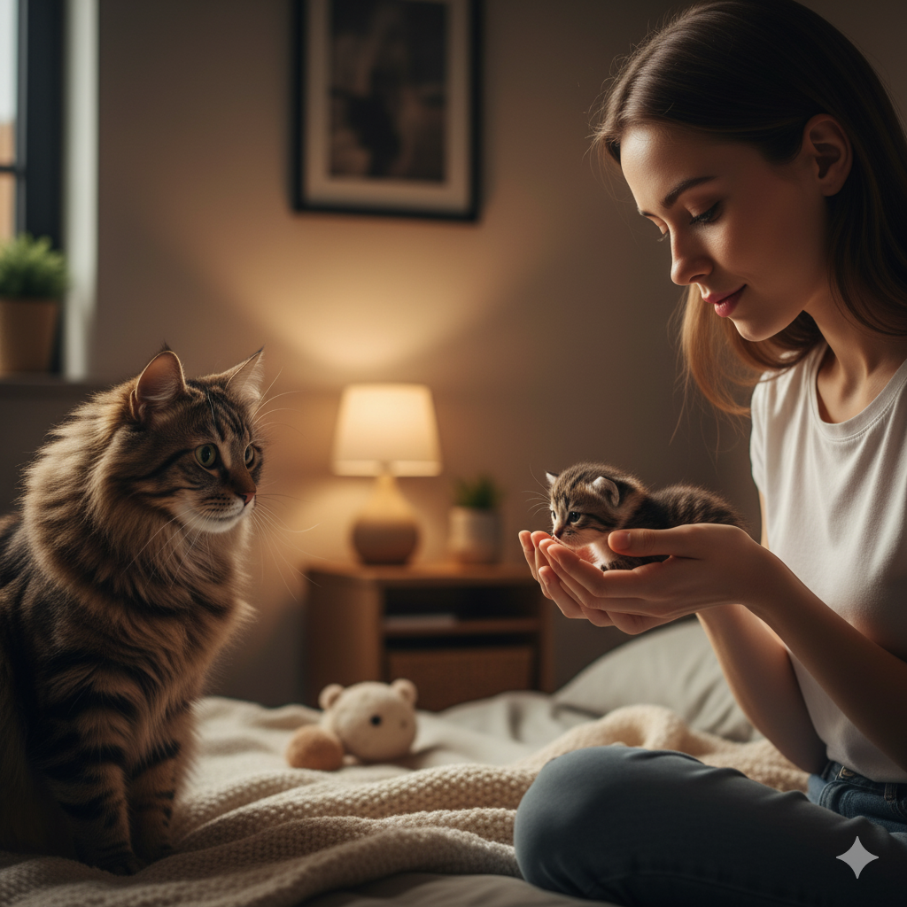 Женщина подхватила котёнка под маленький животик и посадила его на свои колени. Когда она подняла голову, Девочка уходила.