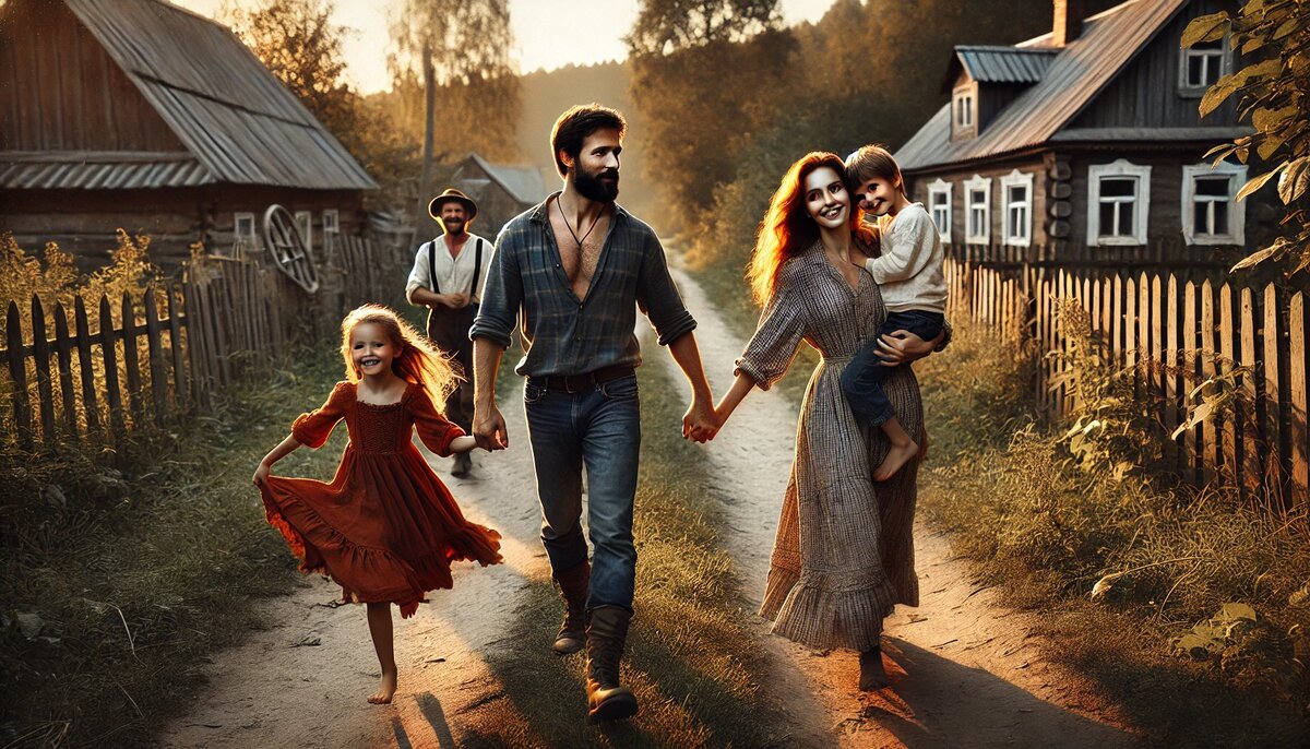 Прошло пять лет. Тёплый летний вечер. По главной улице деревни идёт семья — Артём, Алиса, семилетняя Светлана и трёхлетний Мишутка.