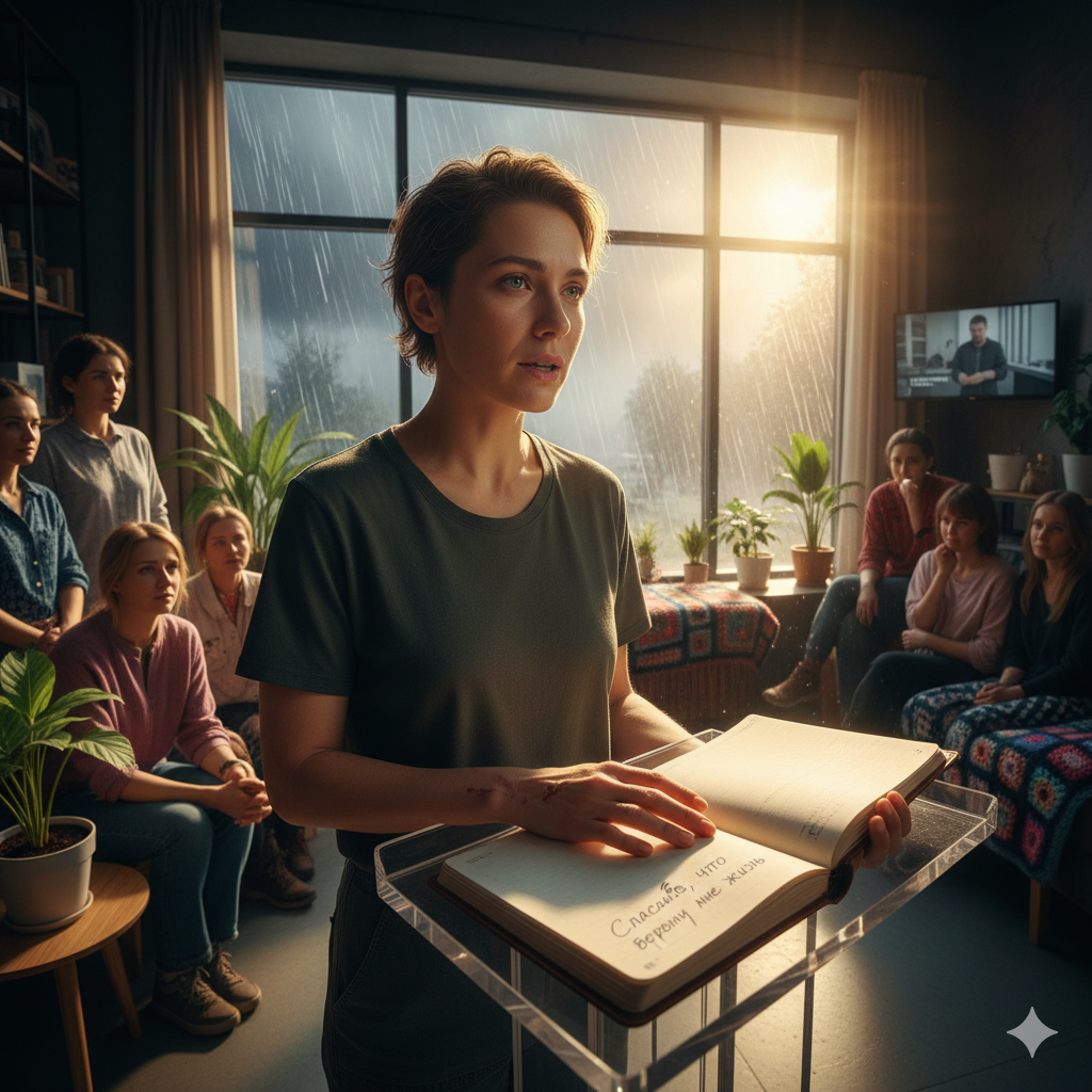 Через год Марина открыла приют для женщин, переживших предательство и болезнь. На открытии она произнесла речь, глядя в окно, где лил дождь: