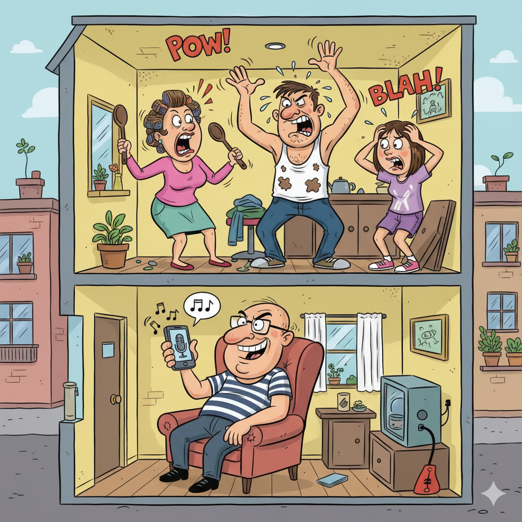 А наверху супруги уже грозились выбросить друг дружку с балкона. Их слова были так отчётливо слышны, что Степан не выдержал, достал свой мобильный телефон, и стал записывать этот ор.