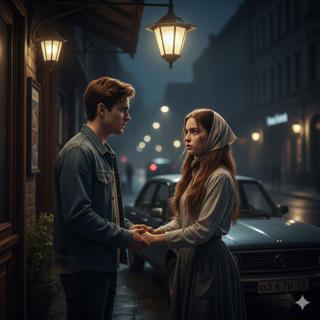 У Артёма сейчас не было отношений, и заводить семью он не торопился. Они вышли из бара. Саша закурил. Артём вызвал такси. У Саши зазвонил телефон, и он отошёл в сторону. Артём не заметил, как к нему подошла девушка. Одета она была, как цыганка. Было уже поздно, но в свете фонаря парень увидел, что у девушки светлые глаза. Волосы у неё были каштановые. Одета она была в длинную юбку и платок. Может, хиппи какая-нибудь, подумал Артём.