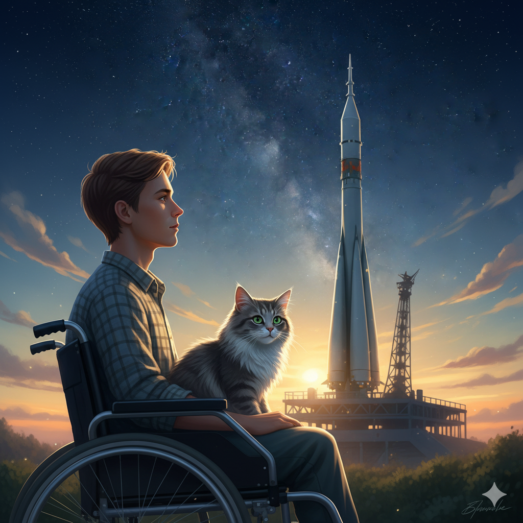 Кто берёт в космос людей с ограниченными возможностями здоровья? Наверное, тот же, кто и котов. Но таких знакомых у наших героев не было. Оба мечтали, оба хотели, и оба понимали, что из этого вряд ли что-то выгорит. Возможно, именно поэтому они довольно быстро сблизились друг с другом.