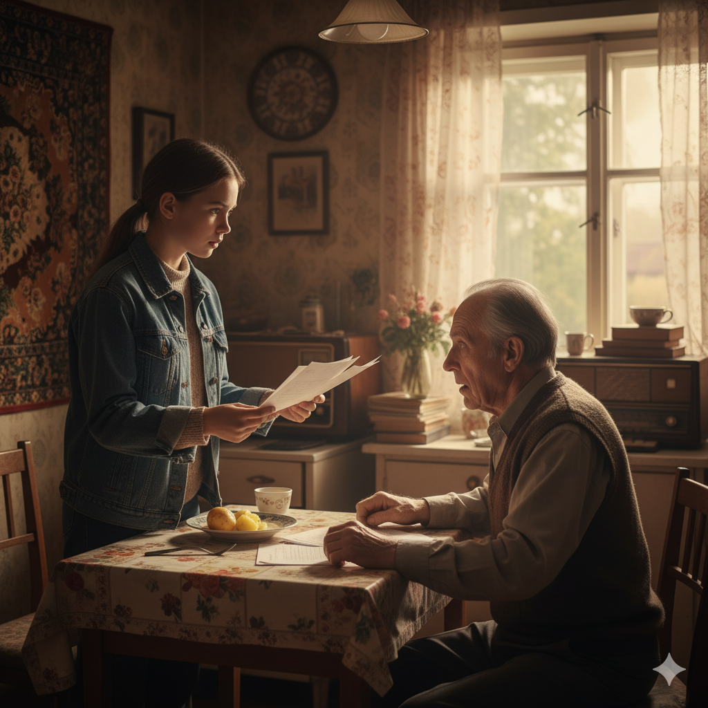 А Катя осталась жить у Ивана Семёновича — не как сиделка, а как внучка, которой у него никогда не было. Он помогал ей с учёбой, а она заботилась о его здоровье. Когда приезжала настоящая племянница Анна Петровна, они все вместе сидели на кухне до поздней ночи, пили чай с вареньем и говорили о жизни.