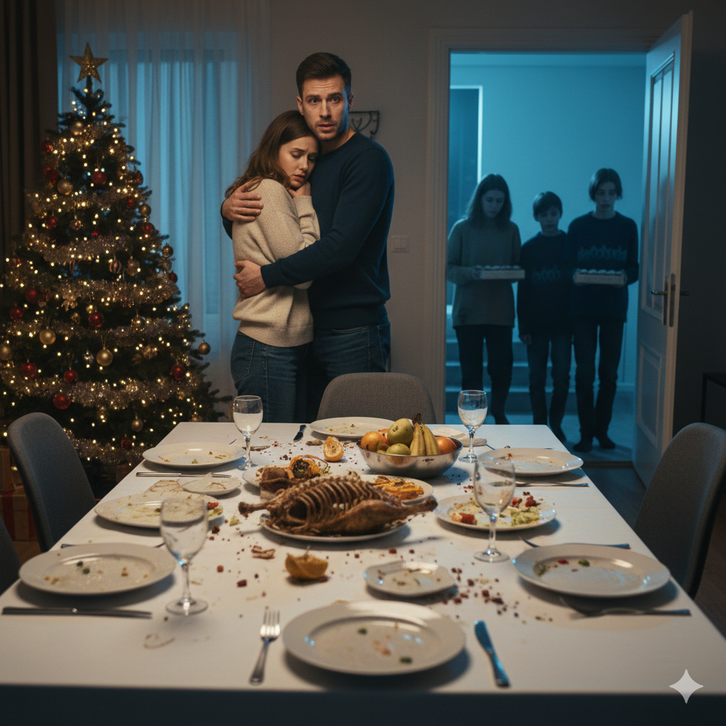 На пороге стояла заплаканная соседка с двумя детьми-подростками. Мальчики были бледными, худыми и очень грустными. На них были старые рваные свитеры. «У меня совсем нет денег, даже на еду, а детям так хочется праздника,» — сказала она, а я прямо в ладоши хлопнула: вот оно! Какая прозорливость! Какая интуиция! Так вот для кого все это было наготовлено! Как поется в одной замечательной детской песне, «творите добрые дела»: супруги станут для соседских детей добрыми волшебниками, просто накормив их!