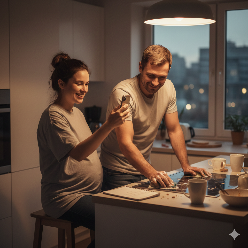 Они готовили простой ужин — салат и пасту. Денис резал овощи, Леся помогала, сидя на стуле. Смеялись, когда он путал базилик с петрушкой. Целовались, пока варились макароны.