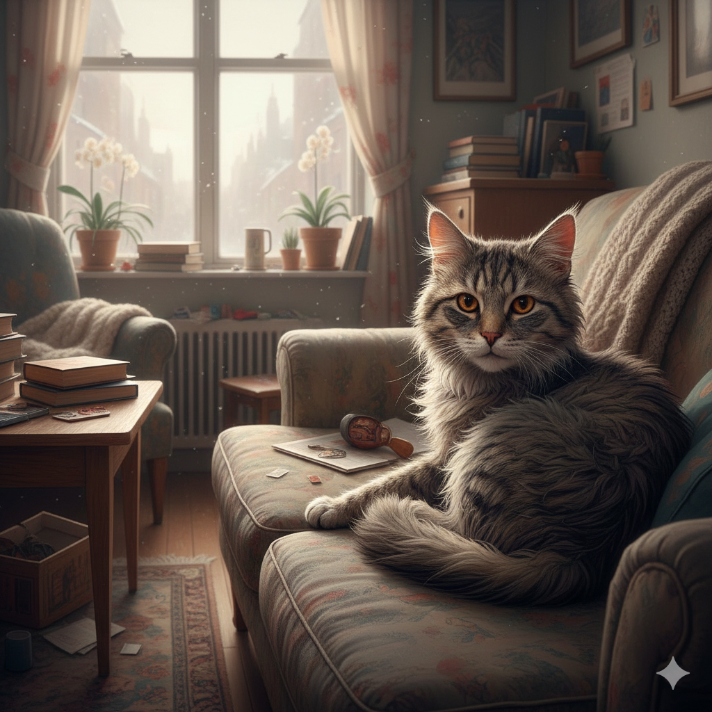 — Ну, чего ты лезешь? Тоже мне, нашёлся, утешитель! — пнула она кота. Тот обиженно мяукнул и скрылся под диваном.