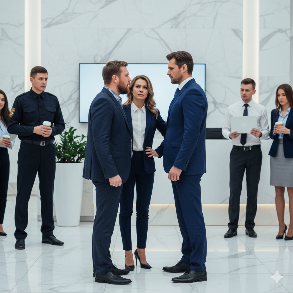 В этот момент в кабинет заглянул охранник. Его лицо было вежливым, но в глазах читалась некоторая настороженность.