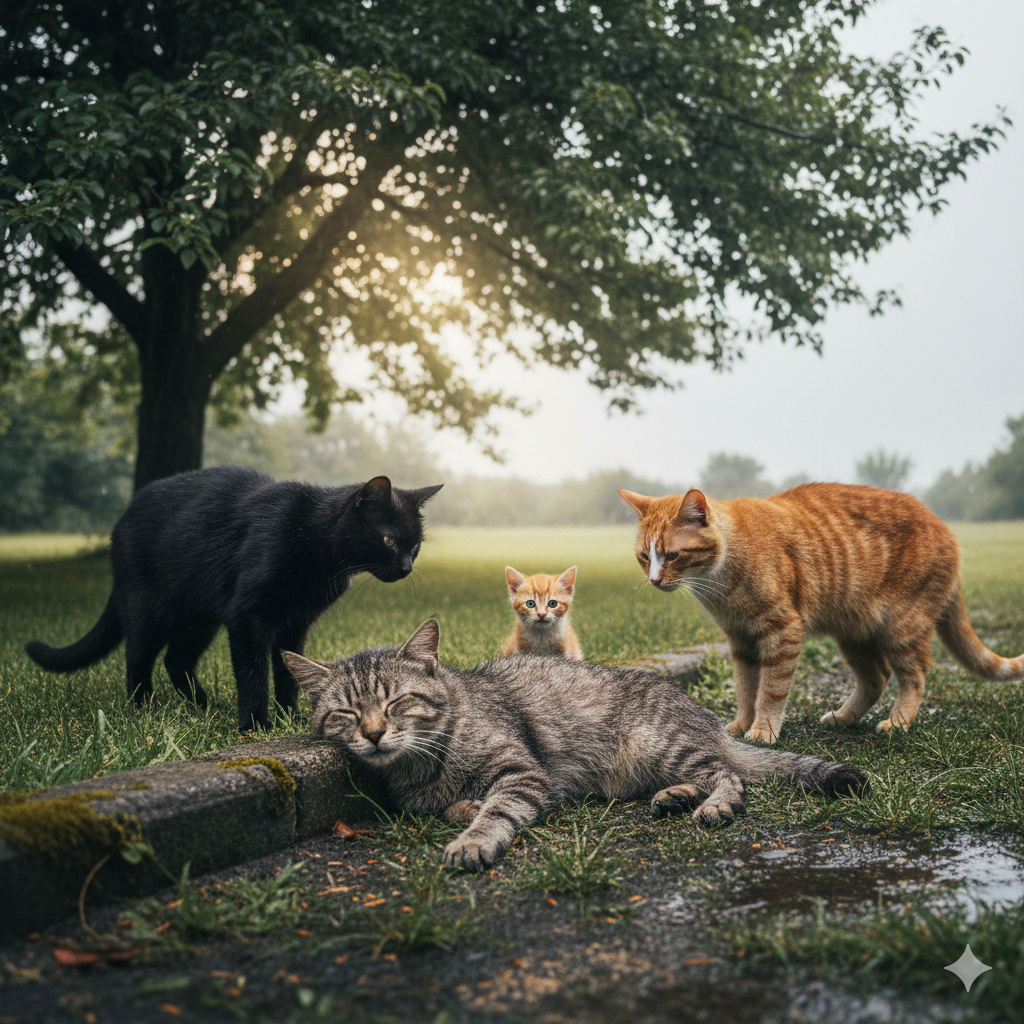 Вскоре начали подходить коты. Рассказ о чужом пришельце, не раздумывая отдавшим жизнь за котенка, передавался от хвоста к хвосту и обрастал все новыми подробностями.