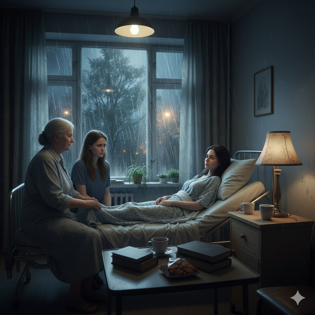 В палате их четверо, но одну женщину увезли на операцию. Оглядывала палату, соседок по несчастью.