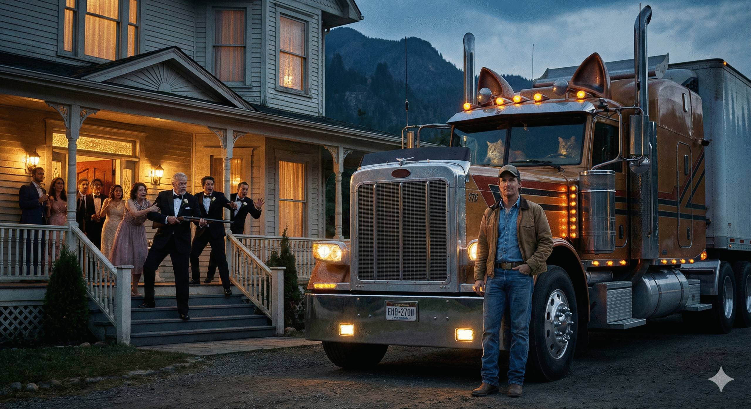 Мужчина-дальнобойщик тоже встал, подошёл к хозяину дома и сказал:
