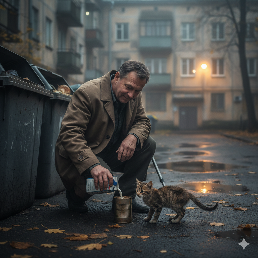 Перед глазами стоял маленький, жалкий и дикий котёнок с помойки: преодолевая явный страх, он вышел на запах предложенной еды и буквально набросился на молоко, которое Сергей Степанович налил в лежавшую рядом консервную банку…