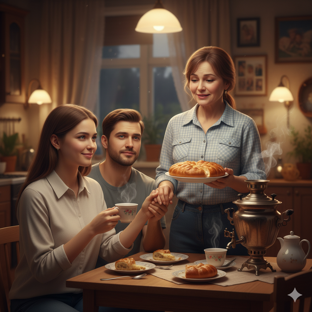 Первый год семейной жизни пролетел быстро и почти незаметно. Молодые обустраивали свою двушку, радовались каждому новому предмету мебели, выбирали шторы, спорили о цвете пледа в гостиную. Вечерами они часто заходили к Нине Викторовне на чай: она, вместе с младшим сыном жила недалеко, в соседнем квартале. В доме всегда пахло выпечкой, и на столе обязательно стоял самовар — привычка, сохранившаяся у неё ещё с молодости.