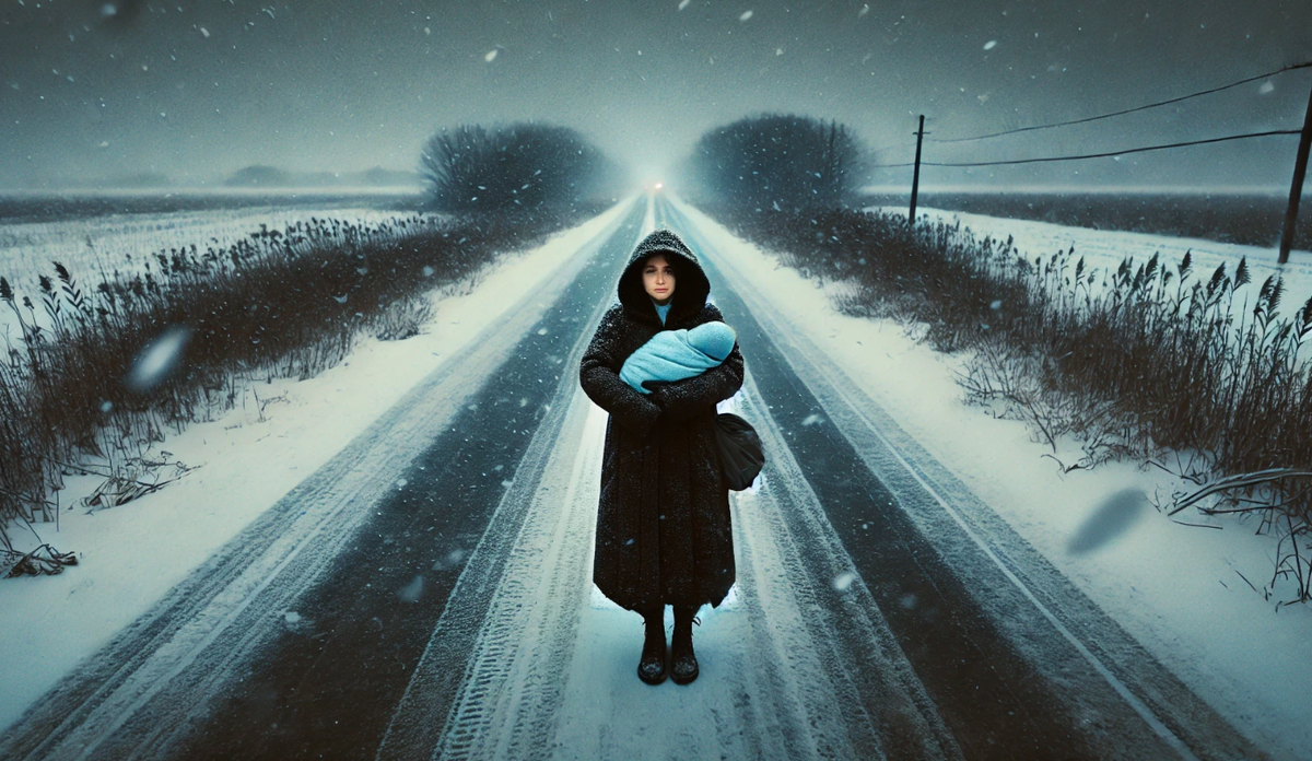 Но вдруг что-то привлекло его внимание. На обочине стояла женщина. Вроде бы ничего странного — зимой всякое бывает. Но её поза, её неподвижность… Алексей Петрович невольно сбросил скорость, пригляделся. Женщина была закутана в тёмный пуховик, который явно не грел её в такой мороз. А на руках у неё что-то свёрнутое. Он прищурился. Нет, не «что-то». Ребёнок.