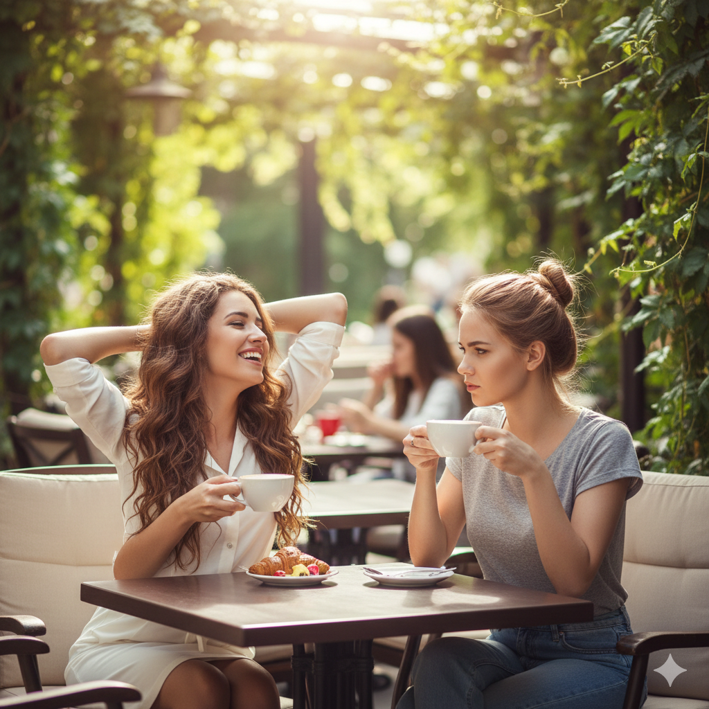 Сидя на летней веранде в кафе с подругой, Милана пила кофе и наслаждалась вкусным десертом. Светило яркое солнце, но на веранде была приятная прохлада. Потянувшись, она даже замурлыкала от наслаждения. Вероника, сделав еще один глоток кофе, спросила: