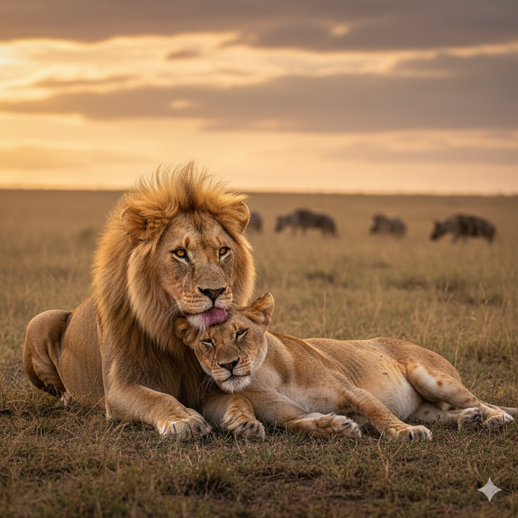 Он лежал на вершине холма и гордо смотрел на окружающую их саванну. Ветер развевал его гриву.