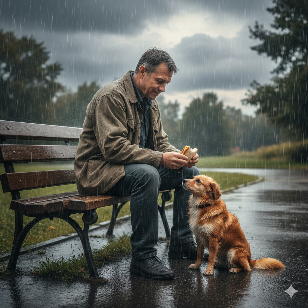 Он протянул собаке свой бутерброд: “Возьми, пёсик. Покушай. Тебе это нужнее, а мне уже ни к чему…” Потом прилёг на скамейку и закрыл глаза. Собака доела бутерброд и, прижавшись к нему, тихонько заскулила. И тогда…