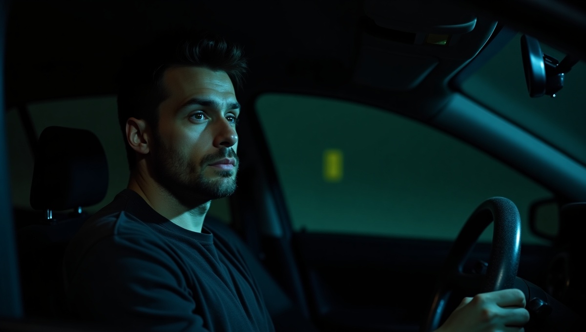 Виктор сидел в машине, сжав руль так, что побелели костяшки пальцев. В зеркале заднего вида отражались размытые огни ночного города: мокрый асфальт блестел, неоновые вывески мелькали, будто маяки среди темноты.