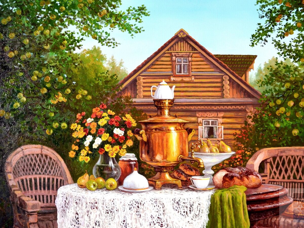 Летними вечерами собиралась большая семья на чаепития в саду. И взрослые, и малыши-внучата, все любили бабушкин сад и вкусный чай с дедушкиным вареньем. Крыжовник с вишнёвыми листочками…