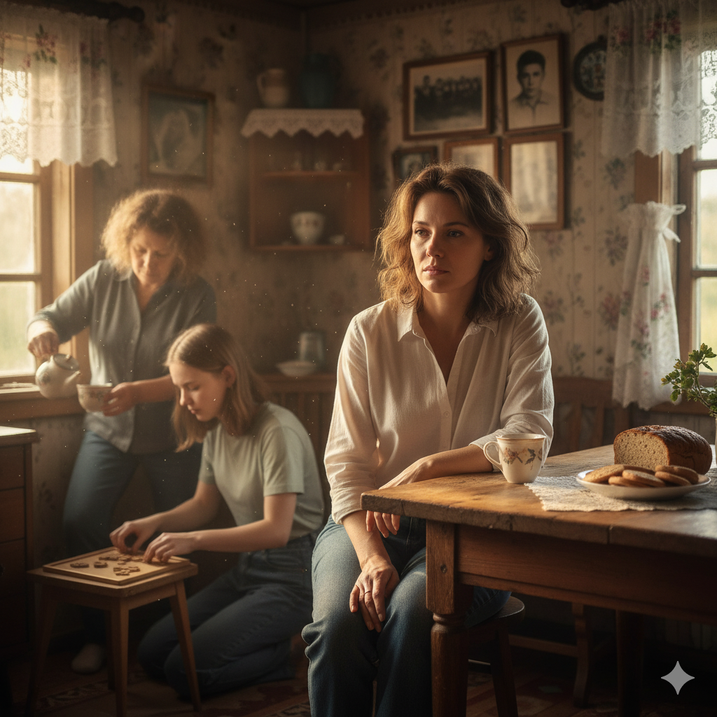В доме пахло свежим хлебом и печным дымом. На стене висели старые фотографии, и Юля сразу заметила снимок отца – молодым, каким она его и помнила.
