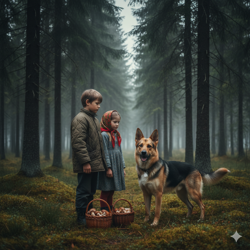 А дети двинулись за собакой дальше. Они впервые так близко видели волка. Было страшно, кого еще они могут встретить в глуши? Но Дружок давал чувство защищенности.