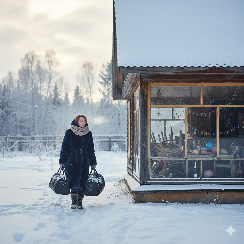 Тридцать первого декабря Марина встала в шесть утра. К восьми была уже на даче — укладывала продукты, разжигала печь, расставляла мебель. Наняла двух помощниц из деревни — бабушек-соседок, которые за три тысячи согласились помочь с готовкой.