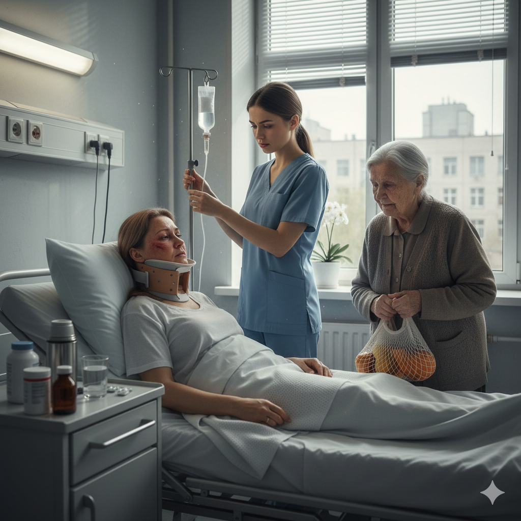 Тамара лежала и смотрела на потолок больничный палаты. Голову повернуть не могла, как и все тело. Шея была в каком-то большом «ошейнике», а тело болело. Она пришла в себя сутки назад и вспомнила весь ужас произошедшего.