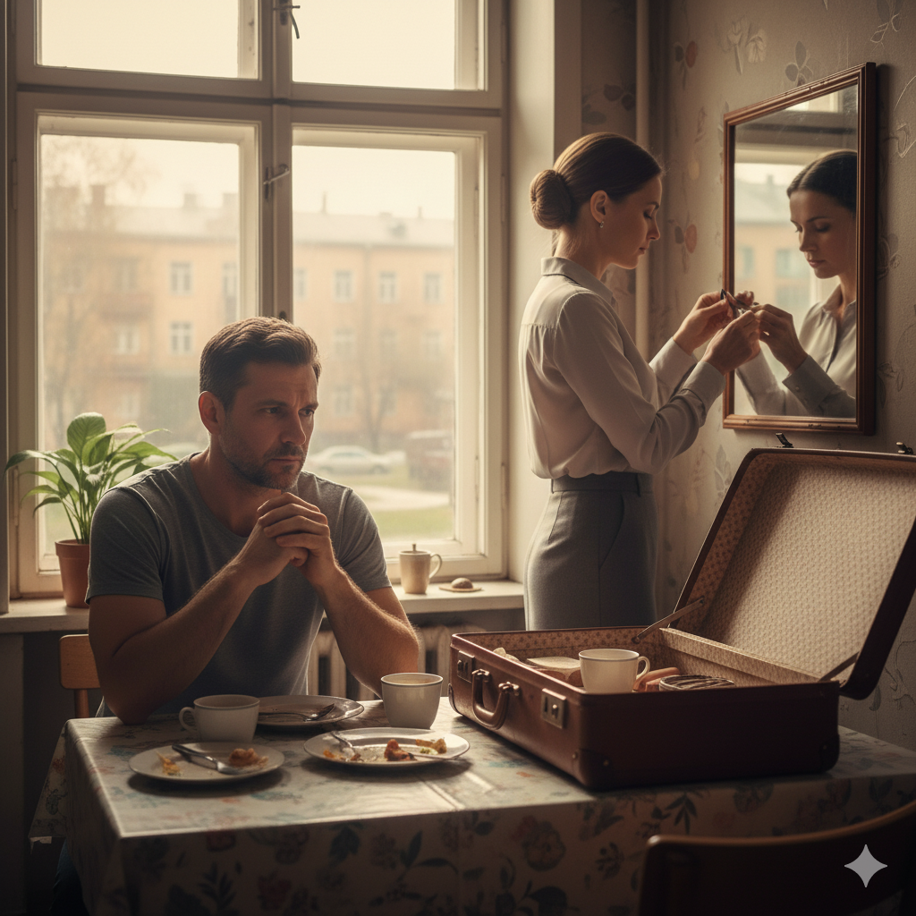 Жена появилась на кухне, как всегда, в семь утра, увидела глаза мужа, и сразу всё поняла.