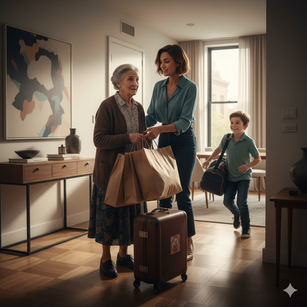 Ее голос был гладким, как отполированный камень, и в нем не было радости, только растерянность и досада. Она не обняла мать, лишь беспомощно взглянула на вторую поклажу — старомодный, разбухший от содержимого чемодан на колесиках, который стоял посреди паркетного пола, словно неуместный артефакт из другого времени.