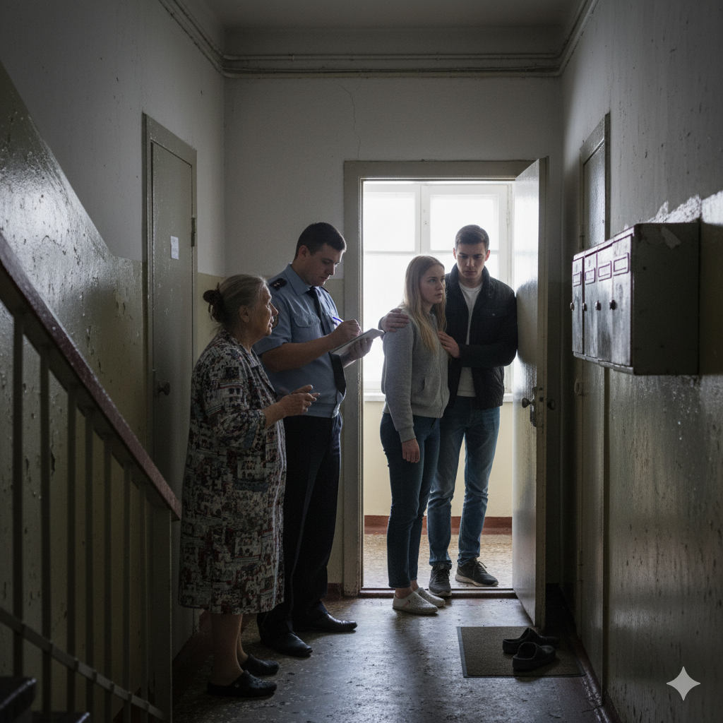 — Ой, Анна Степановна… — растерялся мужчина, увидев соседку. – Я вызвала полицию, участковый сказал, что будут тут через полчаса…