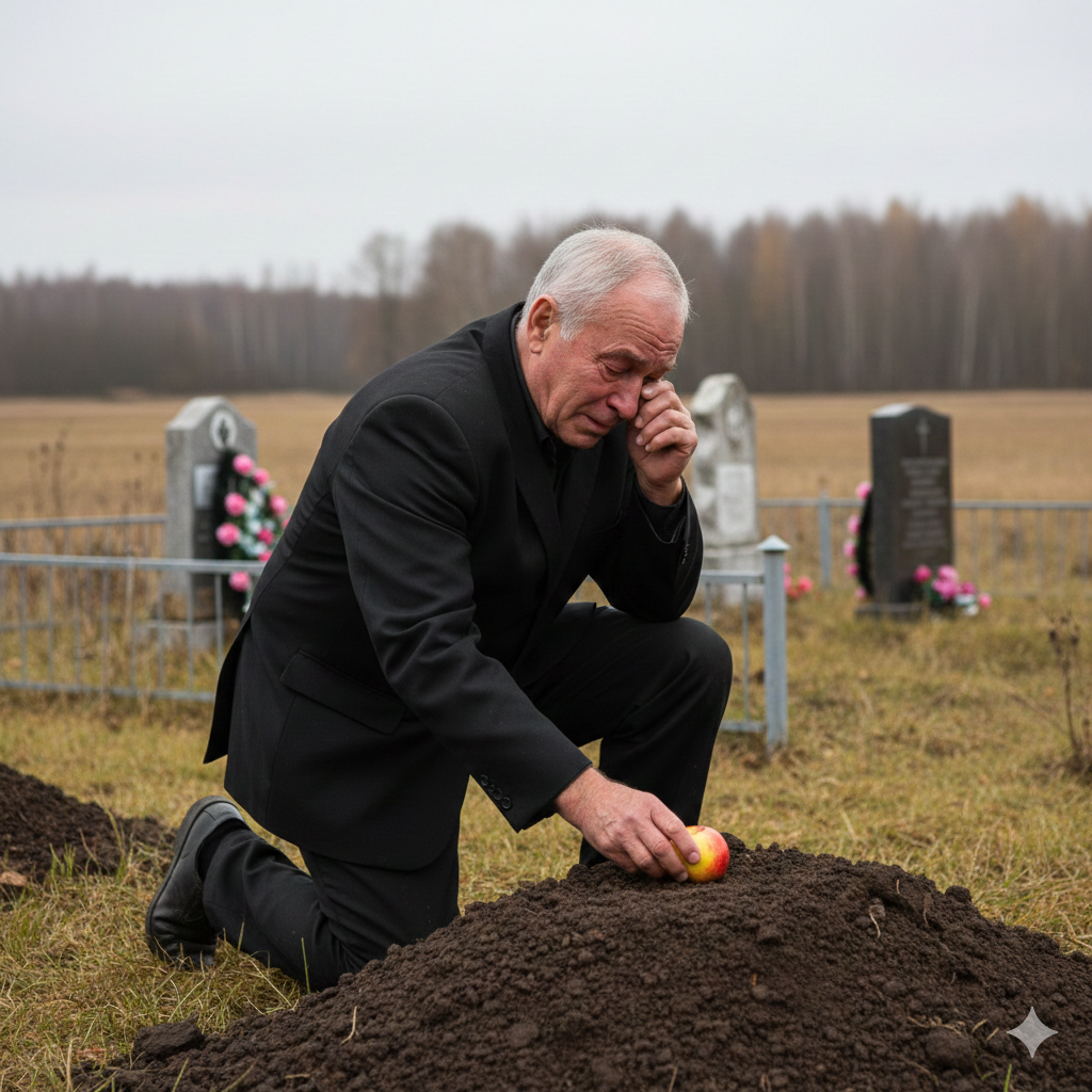 Николай Петрович остался. Постоял у свежего холмика, потом опустился на корточки. Достал из кармана яблоко — маленькое, красно-жёлтое — и положил на землю.