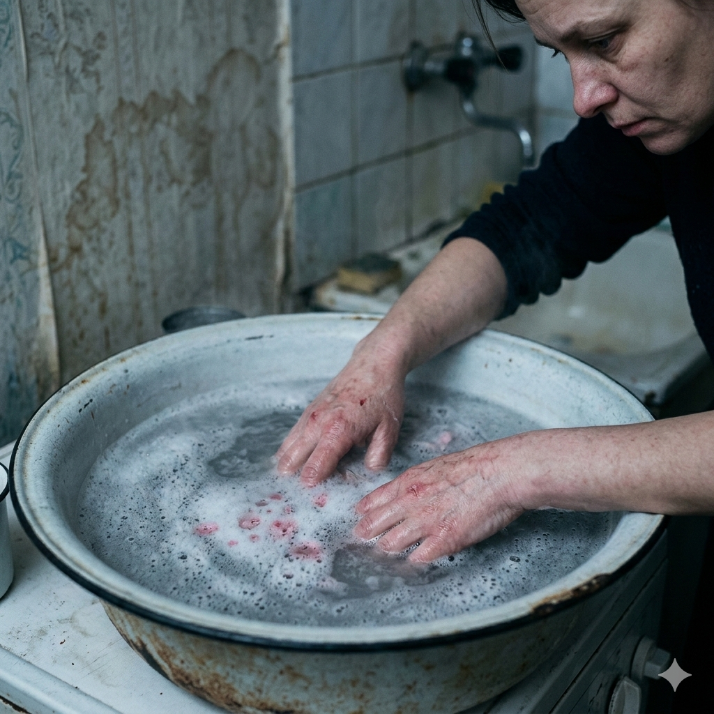Юля стирала в тазу. Вода ледяная — горячую отключили с утра.