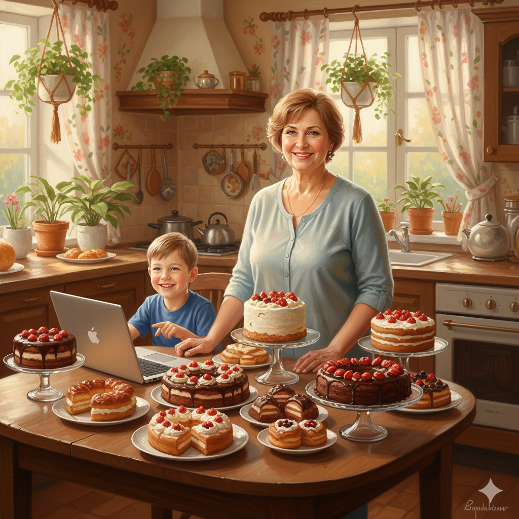 Светлана оборудовала всё под себя — купила новую технику, стол, формочки для выпечки, со временем приобрела и новый духовой шкаф для выпечки, электрический. Её новый заработок стал куда выше предыдущего и куда приятнее — ни тебе хандры, ни упадка сил. Всё шло как по маслу — с радостью и удовлетворением. Светлана любила своё новое занятие, даже гордилась. Торты и другую выпечку фотографировала (у неё теперь есть фотографии собственных произведений) — внук обещал распечатать каталог, а это новый уровень в производстве.