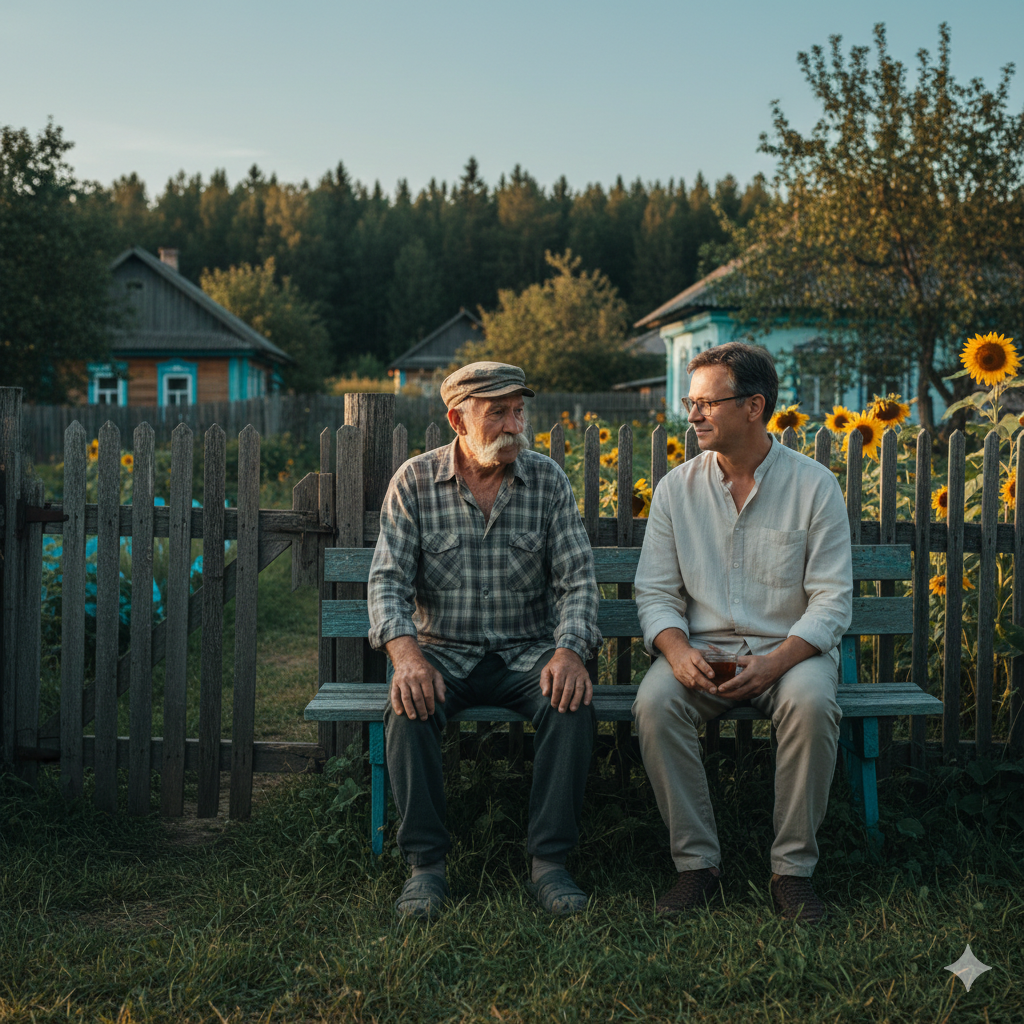— Вот так, дед Степан… Так и пить мы с соседом одновременно бросили, а та бутылка у меня до сих пор стоит в сарае на полочке, правда пустая, уронил как-то я ее, вылилось все содержимое, да и может к лучшему.