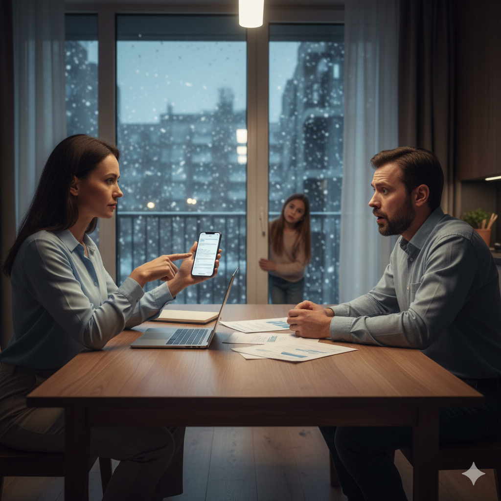 За три дня до назначенного похода к нотариусу я сидела в спальне и слышала, как Дмитрий разговаривает по телефону в кабинете. Дверь была неплотно закрыта.
