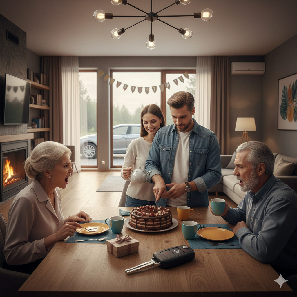 В день рождения Олега супруги купили новую машину. Лариса приготовила праздничный ужин, приехали родители мужа. Тихое застолье грозило перерасти в большой скандал.