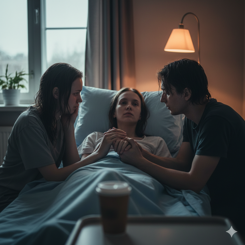Он медленно подошёл и сел на пустой стул с другой стороны кровати. Не спрашивал разрешения. Не говорил ни слова. Просто сел. И так же, как Лена, осторожно, будто боясь обжечься, взял другую руку Юли.