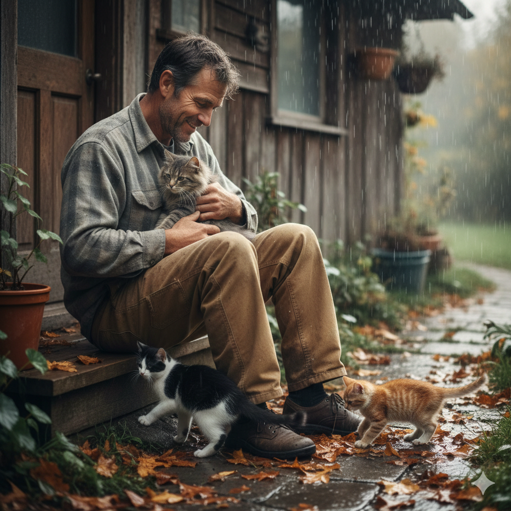 Мужчина больше не донимает товарищей на работе разговорами о своих кошках, их шалостях, ласке, внимании и заботе.