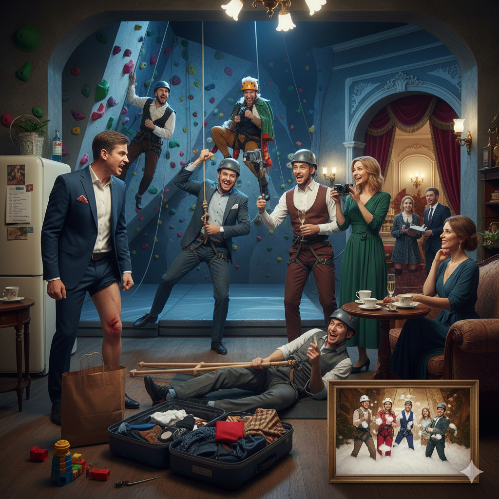 – Ну, что ты, Юр… Она хочет устроить для нас квест «Выше гор только горы»…. советует походить заблаговременно на скалодром, потренироваться, чтобы мы свободно покоряли стену с выступами, для этого нужно всего-то приобрести всю амуницию… Галя хочет сюрприз приготовить, чтоб не избито было…