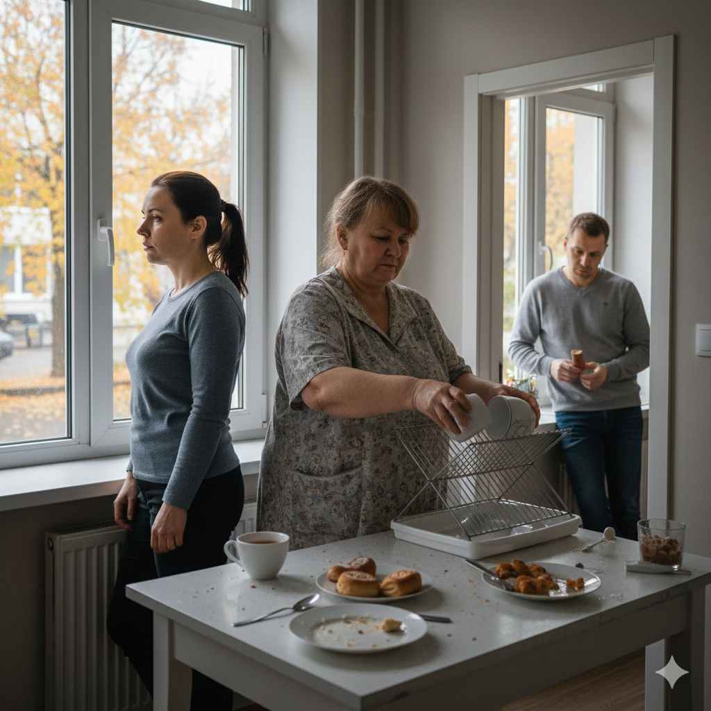 — Ты меня слышишь вообще? — продолжала свекровь, громко ставя чашки в сушилку. — Я с тобой разговариваю!