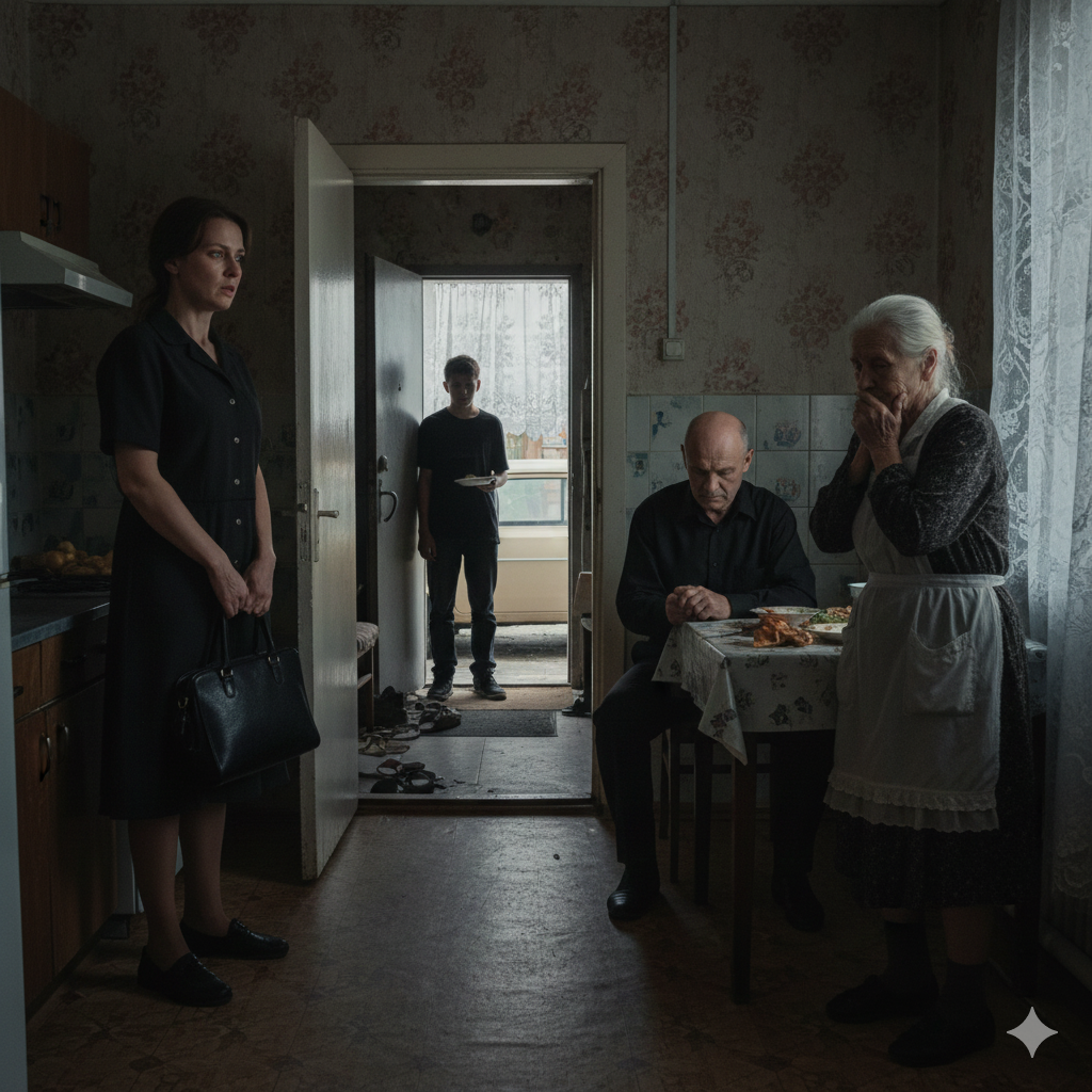 Вера помогала свекрови убирать со стола. Гости разошлись после поминального обеда. Валерий, муж Веры, всё ещё сидел за столом.