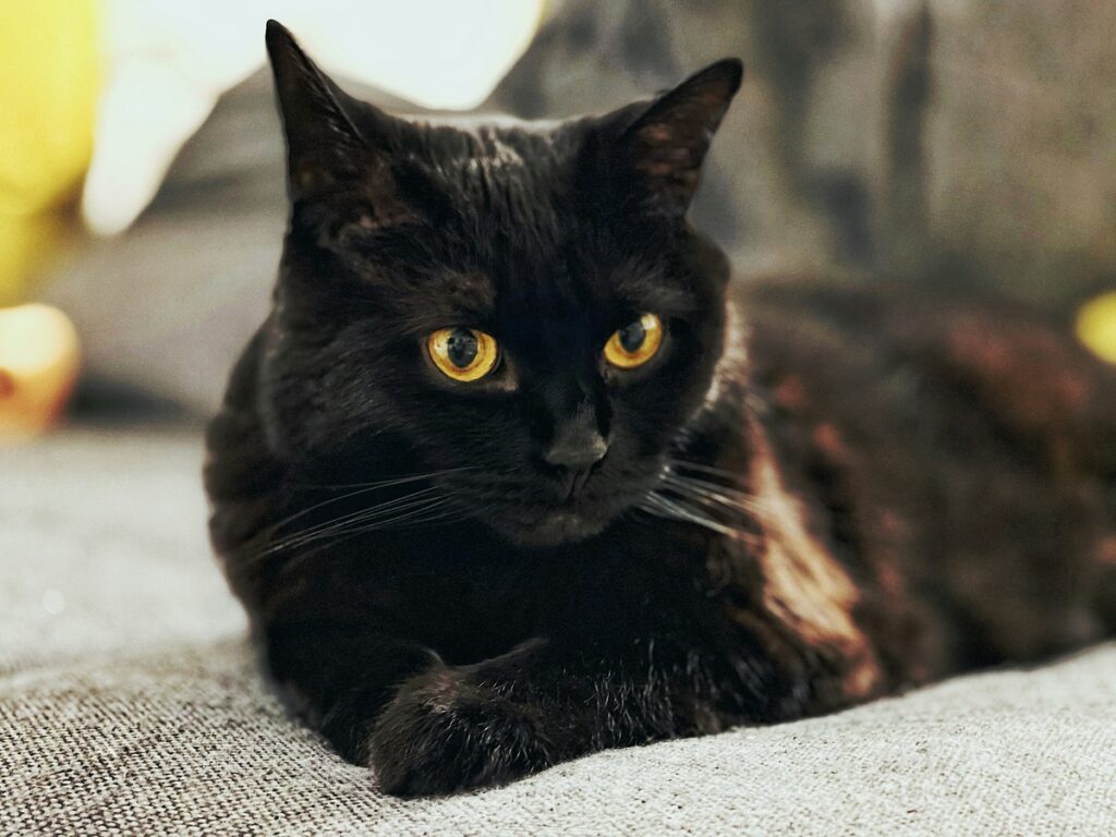 Черная кошка с янтарными глазами подошла к Егору и потерлась о его ноги.