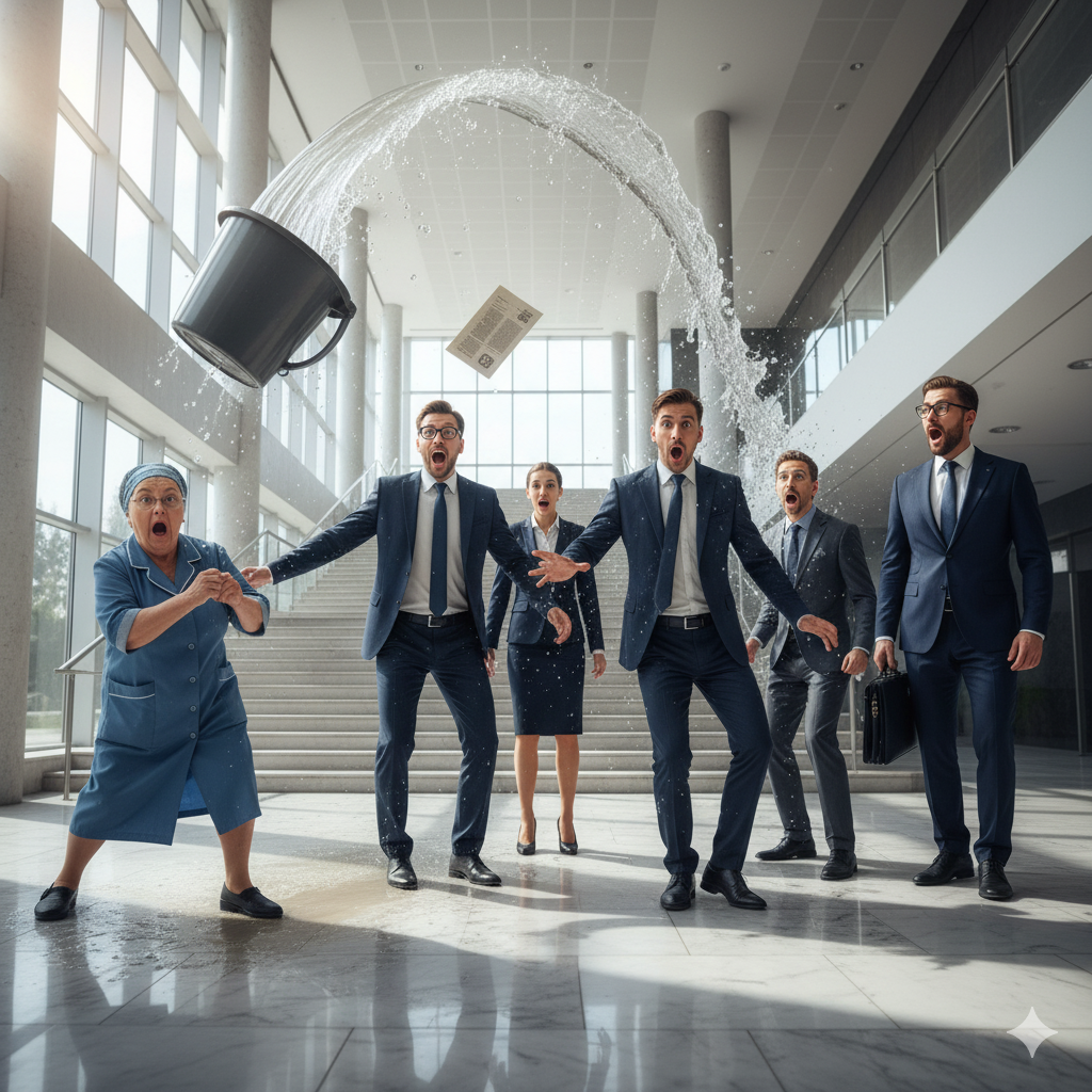 — Как что?! Ты зачем вчера делегацию из нашего министерства культуры грязной водой облила с головы до ног?