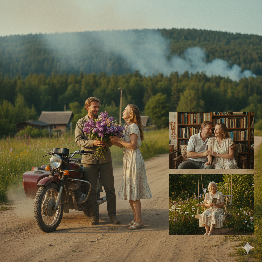 Так и началась их любовь. Встречались часто, Захар приезжал на мотоцикле, охапками дарил ей цветущую сирень, потом полевые цветы. В тот год лето стояло жаркое, где-то были пожары, горели леса, торф. Однажды Захар прилетел на своем мотоцикле: