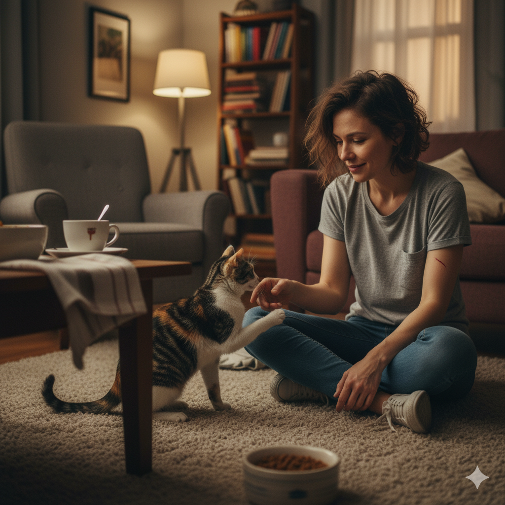Солнце еще не появилось на горизонте, когда что-то ее разбудило. Она открыла глаза и увидела, что кот, сидя рядом, аккуратно зализывает царапину на руке.